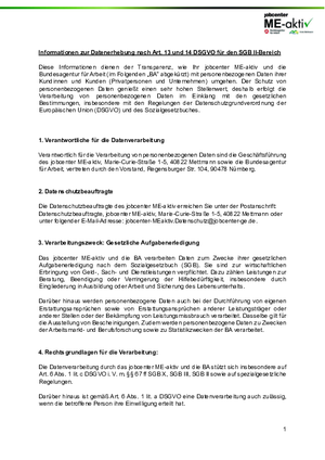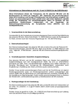 Informationen gemäß Art. 13 und 14 DSGVO zur Verarbeitung Ihrer Daten im Jobcenter im Zusammenhang mit der Leistungserbringung nach dem SGB II können Sie hier herunterladen: