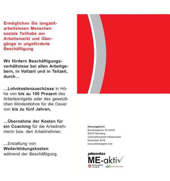 Die Bundesagentur für Arbeit unterstützt Langzeitarbeitslose im Rahmen des Teilhabechancengesetzes...